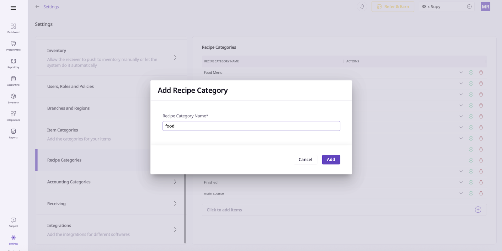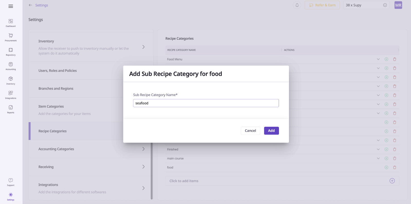 Managing item categories in Supy is a quick and effective way to keep your inventory organized. By regularly updating your categories and subcategories, you ensure that your inventory remains clear, logical, and easy to navigate—making stock management more efficient for everyone on your team.