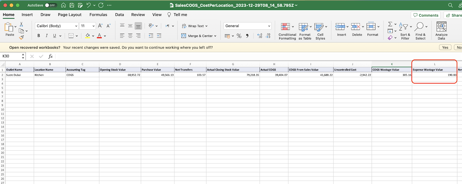 Any ingredient inside the recipe grid can be flagged as "Included in Cost"; by default it is included. When this checkbox is disabled, then the consumption cost of this specific ingredient in this specific recipe will be flagged as "Expense".