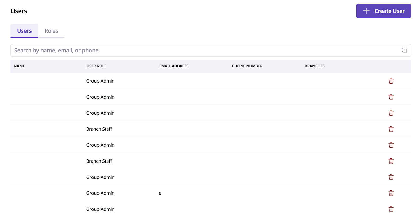 On this page, you will see an overview of all the users for this retailer where you can see their full name, user role, email address, phone number and count of locations they have access to.
