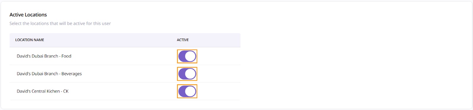 To activate or deactivate a location, check or uncheck the corresponding switches for each location.