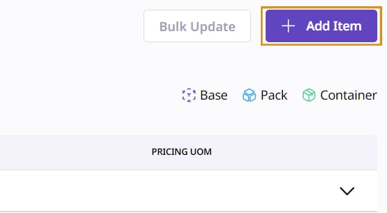 To create a new base item, click on the ‘Add Item’ button located in the top right corner of the screen.