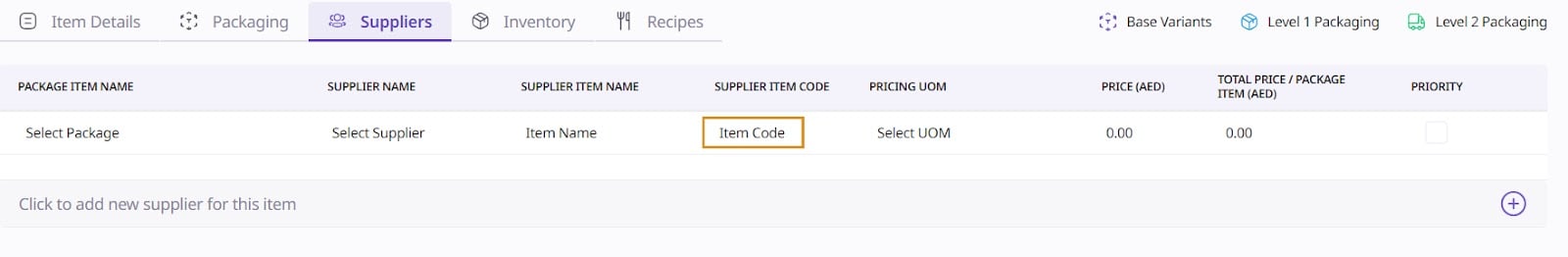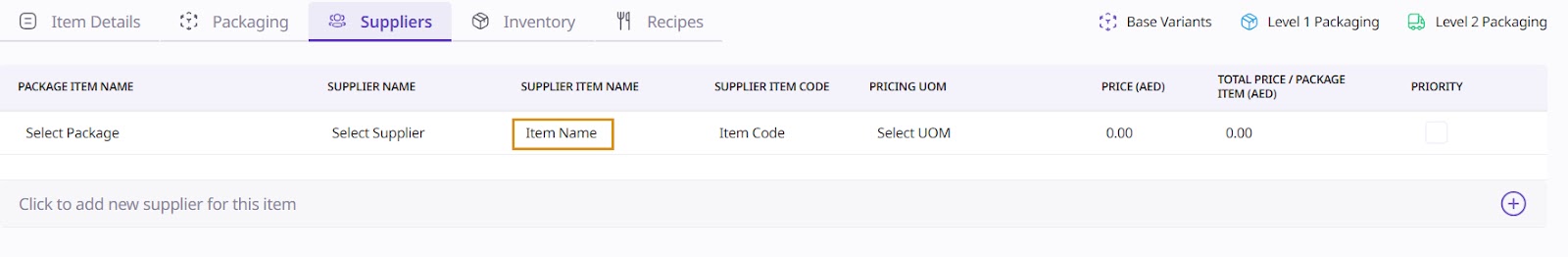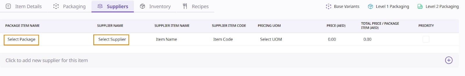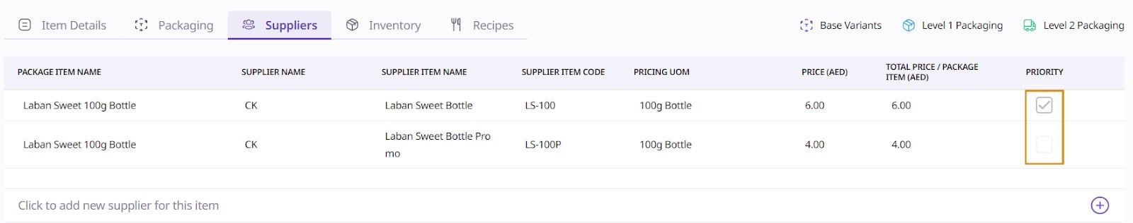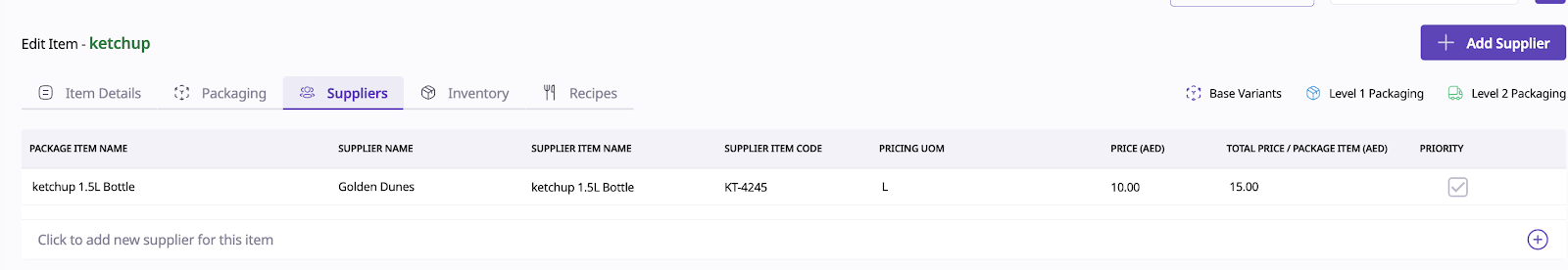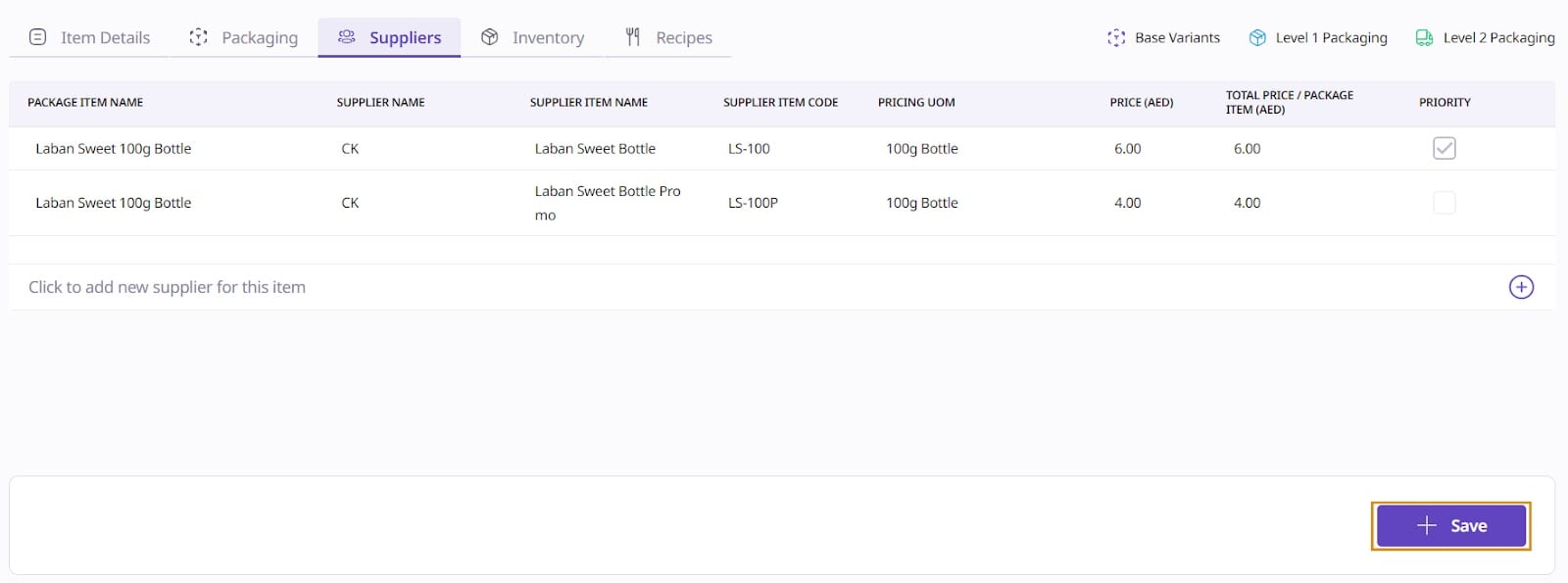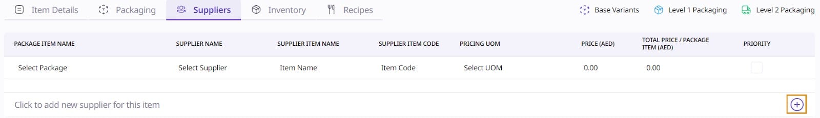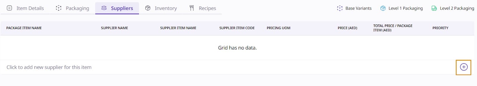 If there are other suppliers for that same product or other packages of the same item that the supplier sells, you can press the plus icon to add a new supplier.