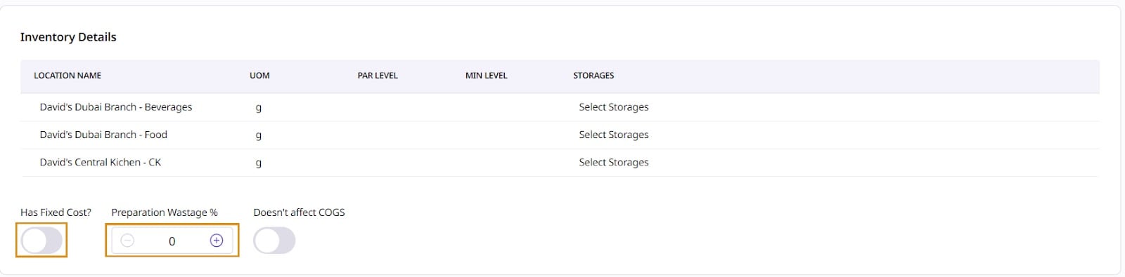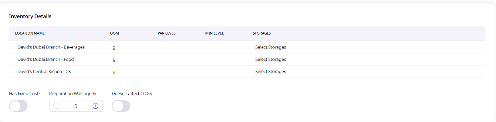 Below the ‘Basic Details’, you have ‘Active Locations’, which indicates which locations (= cost centers / inventories) your item will be stored. You can specify the active locations where the item can be used.