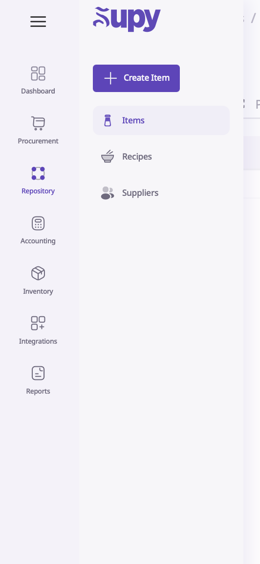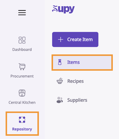 Upon logging into your retail portal, navigate to the 'Repository' tab and click on 'Items'.