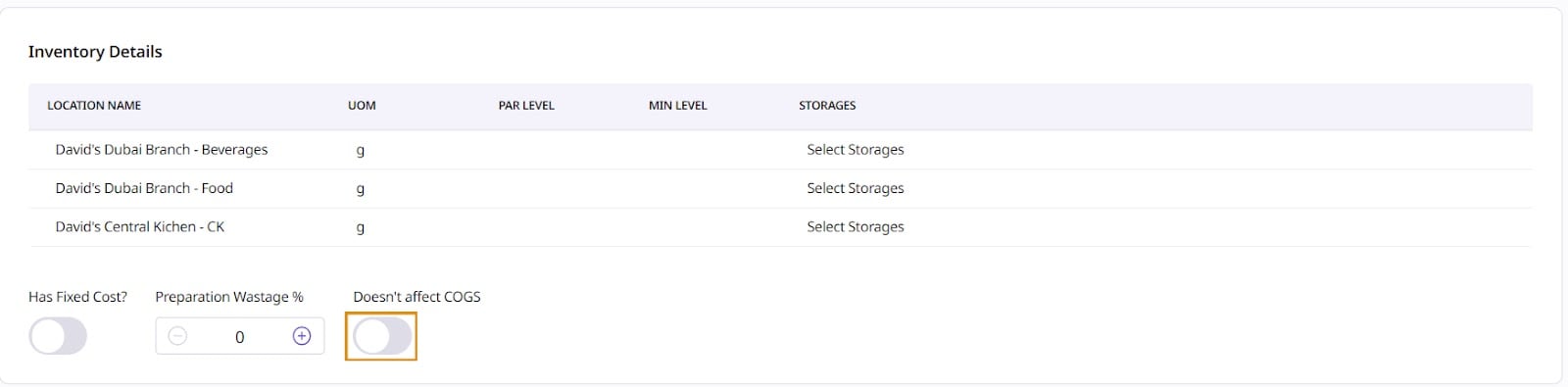 By selecting the option "Doesn't affect COGS", you will exclude this item's cost from the COGS reporting (Cost of Goods Sold); the item cost will be categorized as "Expense" instead.