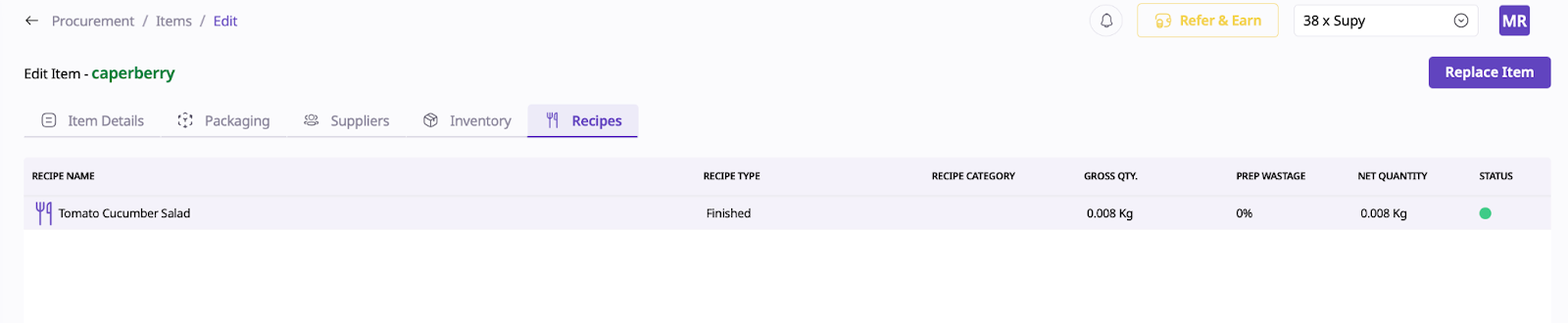 7. Lastly, in the "Recipes" page, select by clicking a recipe to which an item belongs to be able to edit it. This will redirect you to the recipe page in which you can edit the recipe details and ingredients one-by-one.