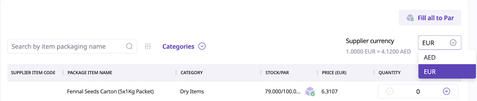 Even if different currencies are used in POs or GRNs, Supy will automatically convert and store values using your main account currency.