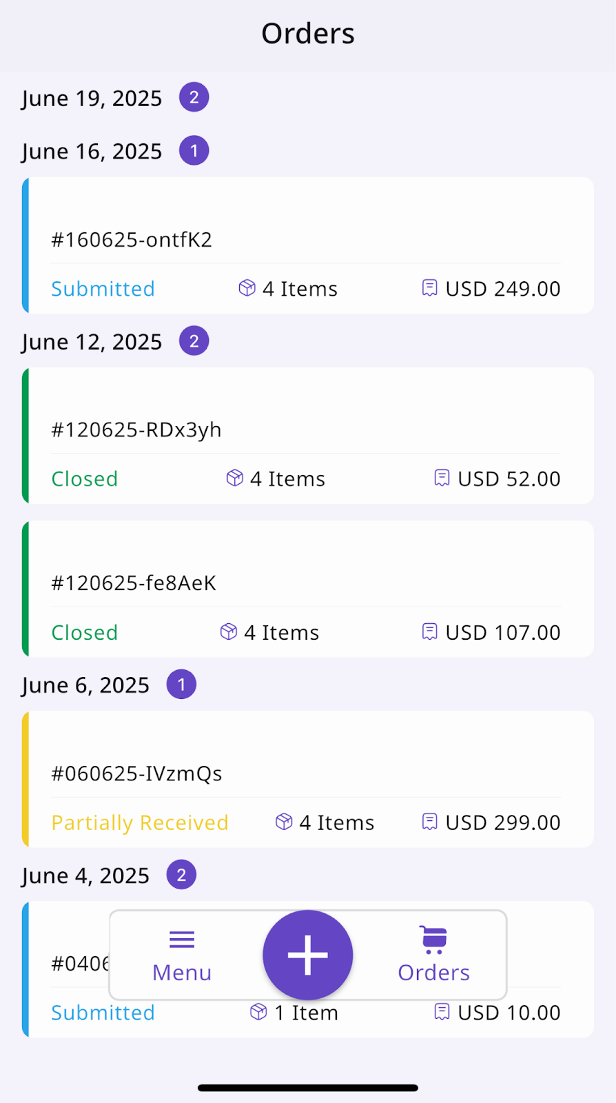 Open the Supy mobile app and tap the “+” icon at the bottom of the screen.
