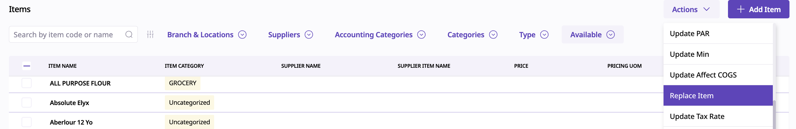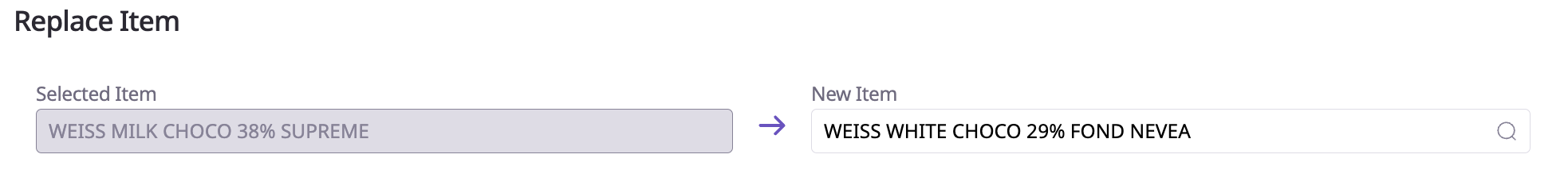 The Replace Item feature helps you plan ingredient transitions more efficiently.