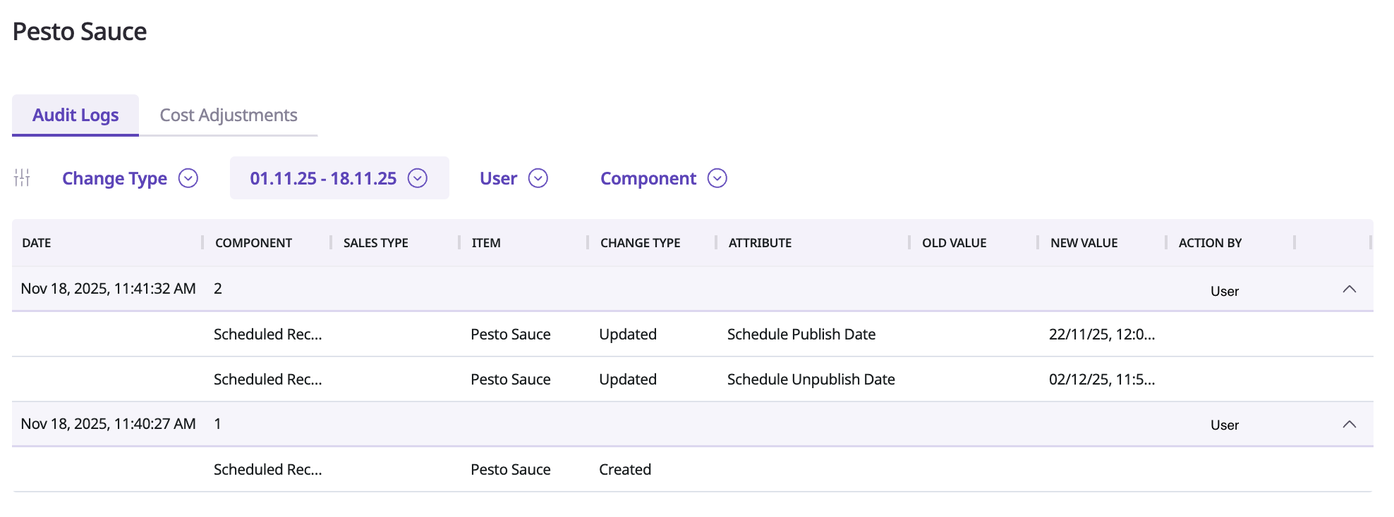 This update helps culinary and procurement teams manage seasonal items, supplier changes, or substitutions in advance while ensuring recipe accuracy and consistency.