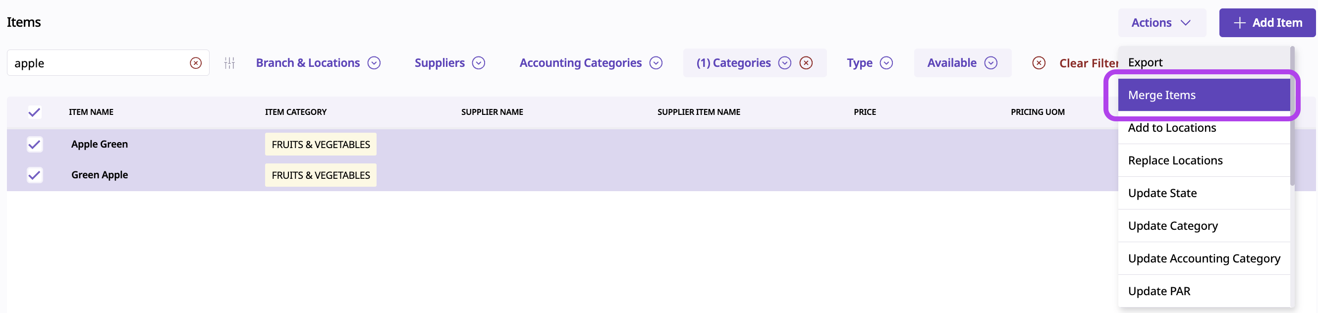 Use Bulk Actions → Merge Items to merge duplicates into the master item