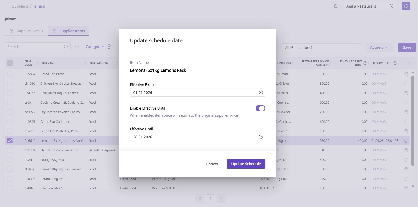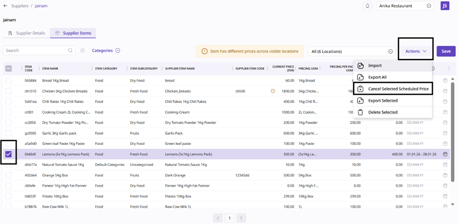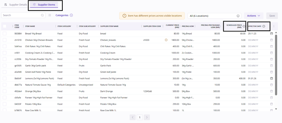 Go to Supplier Module> Select Supplier > Supplier Items.