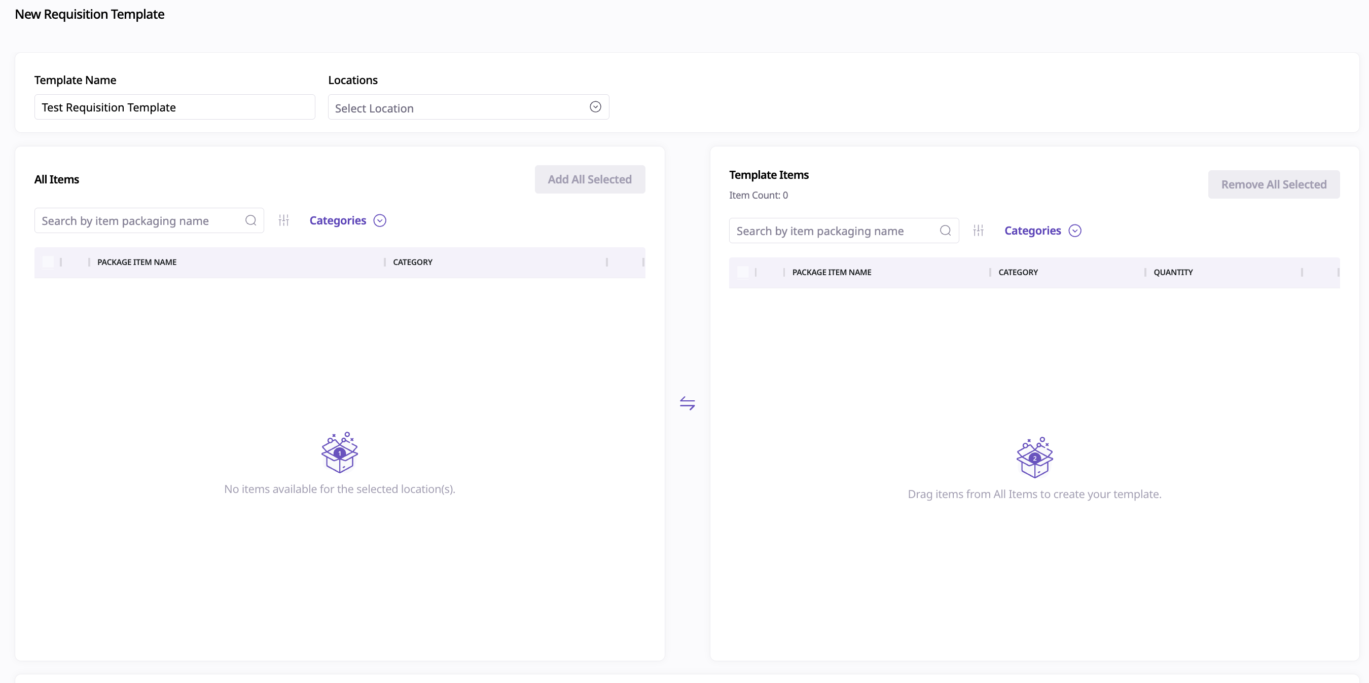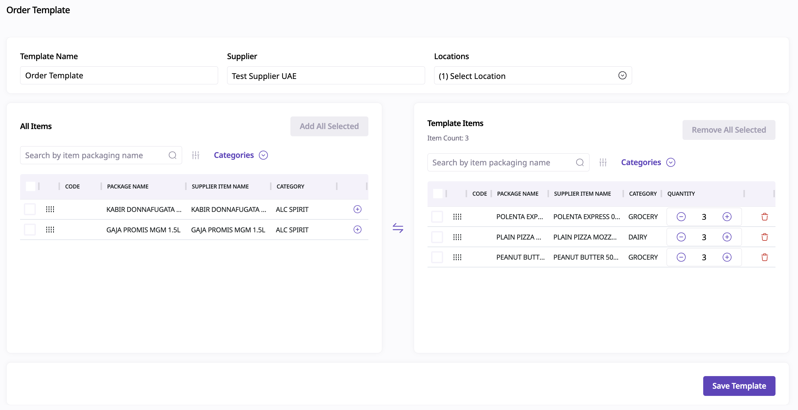 Make your changes — you can update the Template Name, Locations, Items, and Quantities.