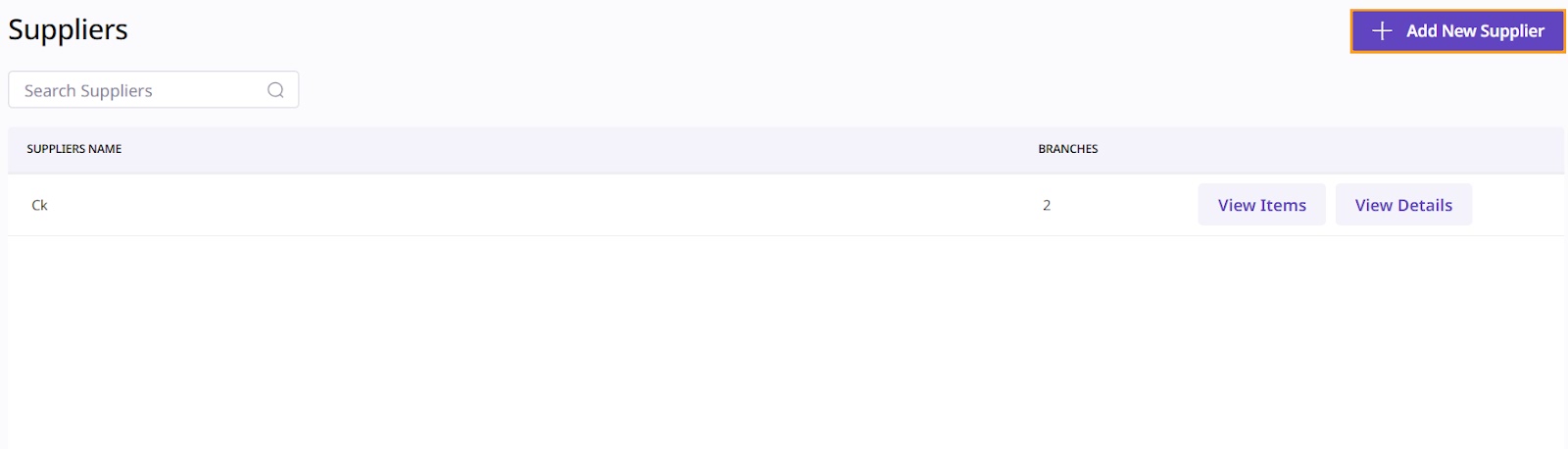 You will be directed to a page listing all your current active suppliers. Click the "Add New Supplier" button located in the top right corner.